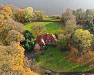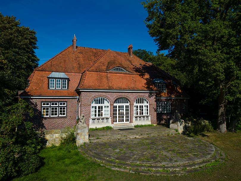 Das imposante Landhaus soll 1913 durch den Ingenieur Georg Klingenberg errichtet worden sein, gemeinsam mit seinem Vater, dem Geheimen Baurat Ludwig Klingenberg. Das dazugehörige Grundstück umfasst ca. 52.200m². Das Anwesen diente als Treffpunkt für die gesamte Familie Klingenberg, der zu diesem Zeitpunkt umfangreiche Ländereien am Westufer des Zwischahner Meeres gehörten. Nach dem Tod Georg Klingenbergs im Jahr 1925 bewohnte seine verwitwete Ehefrau das Gebäude zunächst weiter, musste es jedoch im Zweiten Weltkrieg an die Wehrmacht übergeben. Während des Zweiten Weltkriegs diente es u.a. als Offizierskasino zum nördlich angrenzenden Fliegerhorst, später als Offizierskasino für das medizinische Personal des benachbart gebauten Krankenhauses der Bundeswehr. (Foto: © Helene von Oven)